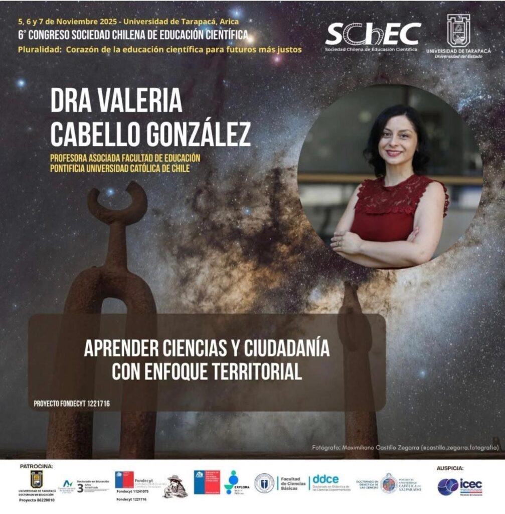 El Proyecto Fondecyt N°11241075, titulado “Enseñar ciencias naturales a nivel primario en contexto fronterizo: relaciones y tensiones entre el ejercicio profesional, la formación inicial y la autoeficacia”, liderado por la profesora Katherine Acosta García, forma parte de la comisión organizadora y patrocinadores del evento. Su participación busca contribuir al diálogo entre la investigación en educación científica y los desafíos que enfrentan los territorios fronterizos y diversos del norte de Chile.